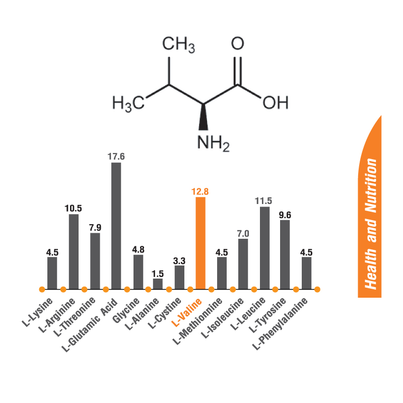 วาลีน ( Valine ) กรดอะมิโนวาลีน เป็นสิ่งจำเป็นสำหรับกระบวนการ Muscle Metabolism และยังเป็น 1 ใน Branched Chain Amino Acids ( BCAA ) ซึ่งเป็นกระบวนการเปลี่ยนแปลงพลังงานในกล้ามเนื้อ ซึ่งรวมถึงเชื้อเพลิงสำหรับการทำงานของกล้ามเนื้อ ช่วยกระตุ้นสมรรถนะของสมอง เหมาะสำหรับนักกีฬาหรือนักเพาะกาย หรือในผู้ที่ต้องการให้รูปร่างดี