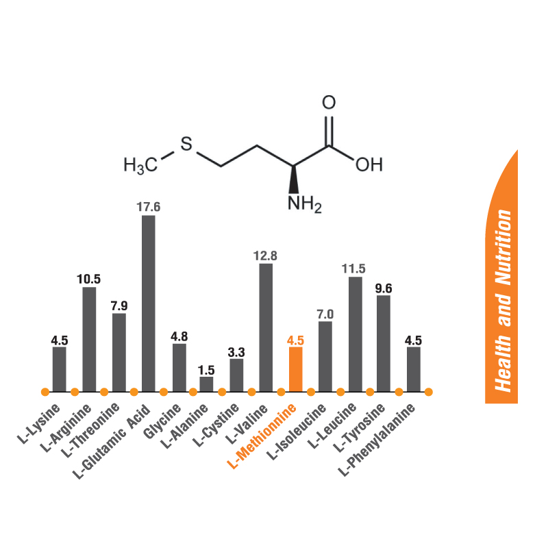 เมทไธโอนีน ( Methionnine ) เป็นกรดอะมิโนที่ช่วยในการย่อยสลายไขมัน โดยทำงานร่วมกับกรดอะมิโนไลซีน ( Lysine ) มีบทบาทในการสังเคราะห์ แอล – คาร์นิทีน ( L – carnitine ) ซึ่งช่วยในการเผาผลาญไขมัน หน้าที่สำคัญของ เมทไธโอนีน คือ เป็นแหล่งที่ให้ซัลเฟอร์ ( Sulfur ) หรือที่เราเรียกว่า “กำมะถัน “ หากร่างกายขาดหรือมีปริมาณของกำมะถันที่ไม่เพียงพอ ร่างกายจะไม่สามารถสร้างสารต้านอนุมูลอิสระและจะไม่สามารถนำสารต้านอนุมูลอิสระที่ได้รับมาจากแหล่งต่าง ๆ มาใช้ให้เกิดประโยชน์ได้