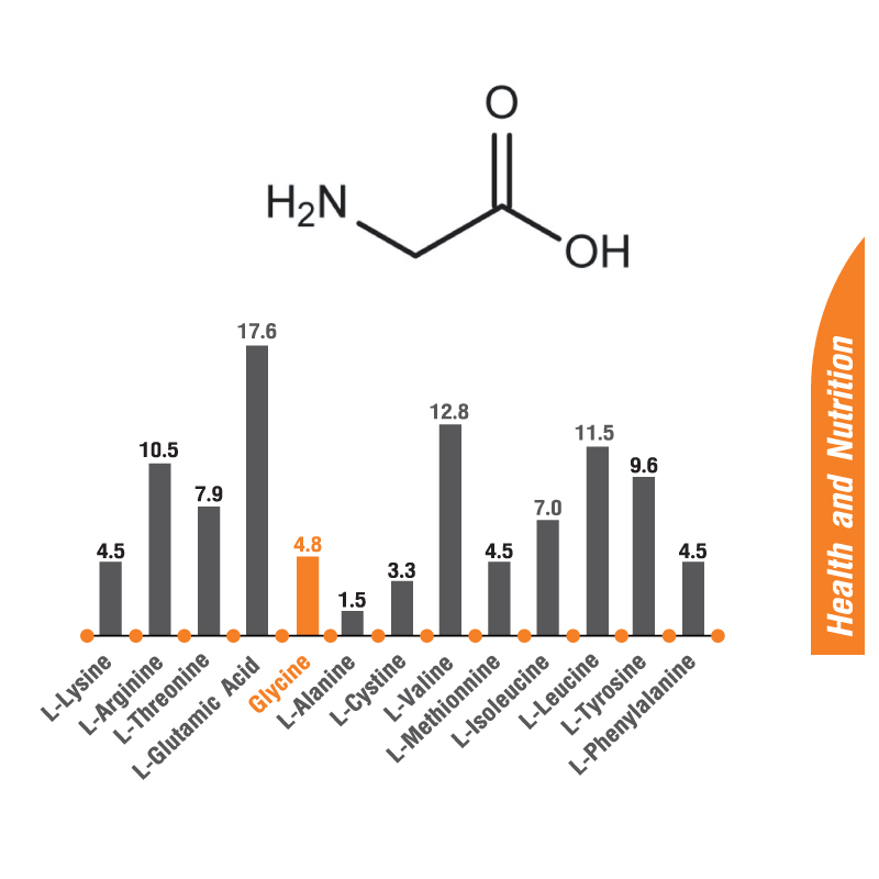 ไกลซีน ( Glycine ) ถือเป็น โครงสร้างหลักของ Collagen ช่วยรักษาภาวะต่อมใต้สมองทำงานน้อย รักษาโรคกล้ามเนื้อฝ่อลีบ รักษาภาวะน้ำตาลต่ำ