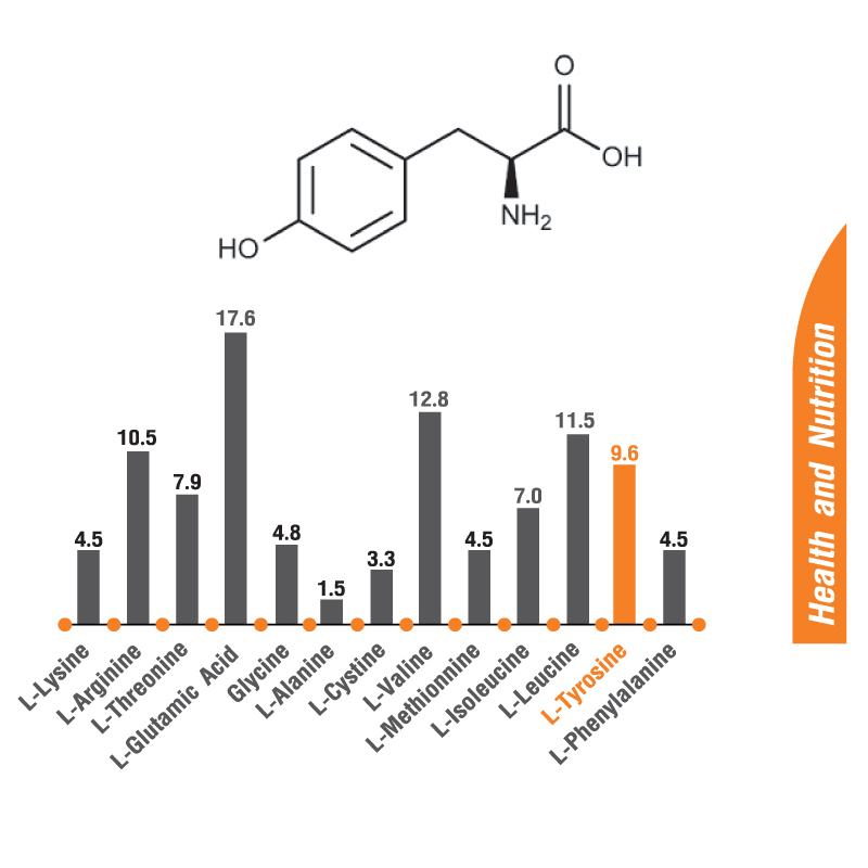 ไทโรซีน ( Tyrosine ) ช่วยส่งเสริมการทำงานของต่อมหมวกไต ต่อมใต้สมอง ต่อมไทรอยด์ และช่วยรักษาอาการซึมเศร้า กระตุ้นการสร้างของนอร์เอฟิเนฟวิน ซึ่งยับยั้งความอยากอาหาร โดยช่วยควบคุมศูนย์กลางความรู้สึกหิวในไฮโปธาลามัสส่วนใต้สมอง ทำหน้าที่เหมือนยาระงับความอยากอาหาร