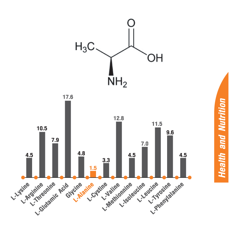 อะลานีน ( Alanine ) ช่วยควบคุมระดับน้ำตาลในเลือด โดนช่วยในการผลิตแอนตี้บอดี้ ช่วยในการเผาผลาญน้ำตาล อะลานีนเป็นส่วนที่สำคัญของกล้ามเนื้อและเป็น 1 ในกรดอะมิโนไม่กี่ตัวที่เปลี่ยนเป็นน้ำตาลกลูโคสได้ ซึ่งเป็นแหล่งสำคัญที่ให้พลังงานแก่ร่างกาย อะลานีนจะนิยมใช้เป็น อาหารเสริมสำหรับนักกีฬา โดยจะช่วยสร้างกล้ามเนื้อ เสริมความแข็งแรงให้กับร่างกาย
