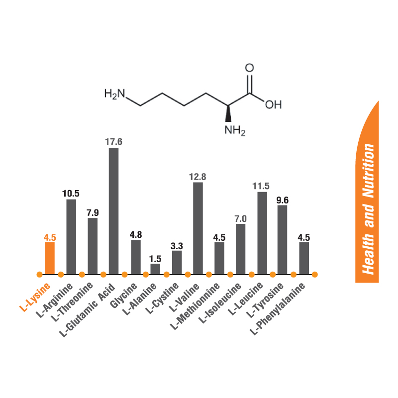 ไลซีน ( Lysine ) ไลซีน เป็นกรดอะมิโนที่มีความสำคัญอย่างยิ่งยวดในการสร้างโปรตีนที่สำคัญต่อร่างกาย โดยร่างกายต้องการไลซีนเพื่อการเจริญเติบโต การซ่อมแซมเนื้อเยื่อ และการสร้างภูมิต้านทาน ฮอร์โมน รวมถึงเอนไซม์ต่าง ๆ และการบำรุงรักษาสมดุลไนโตรเจนในร่างกายไลซีนยังเป็น 1 ใน Branched Chain Amino Acids ( BCAA ) ใช้เสริมสร้างโปรตีนของกล้ามเนื้อ ช่วยเพิ่มกำลังให้กับร่างกาย เป็นที่ยอมรับของนักเพาะกาย และผู้ที่อยากมีรูปร่างดี และยังช่วยกระตุ้นการหลั่งโกรทฮอร์โมน( Growth Hormone ) เพื่อช่วยชะลอความเสื่อมของเซลล์ ช่วยให้ผิวพรรณสดใสดูอ่อนเยาว์